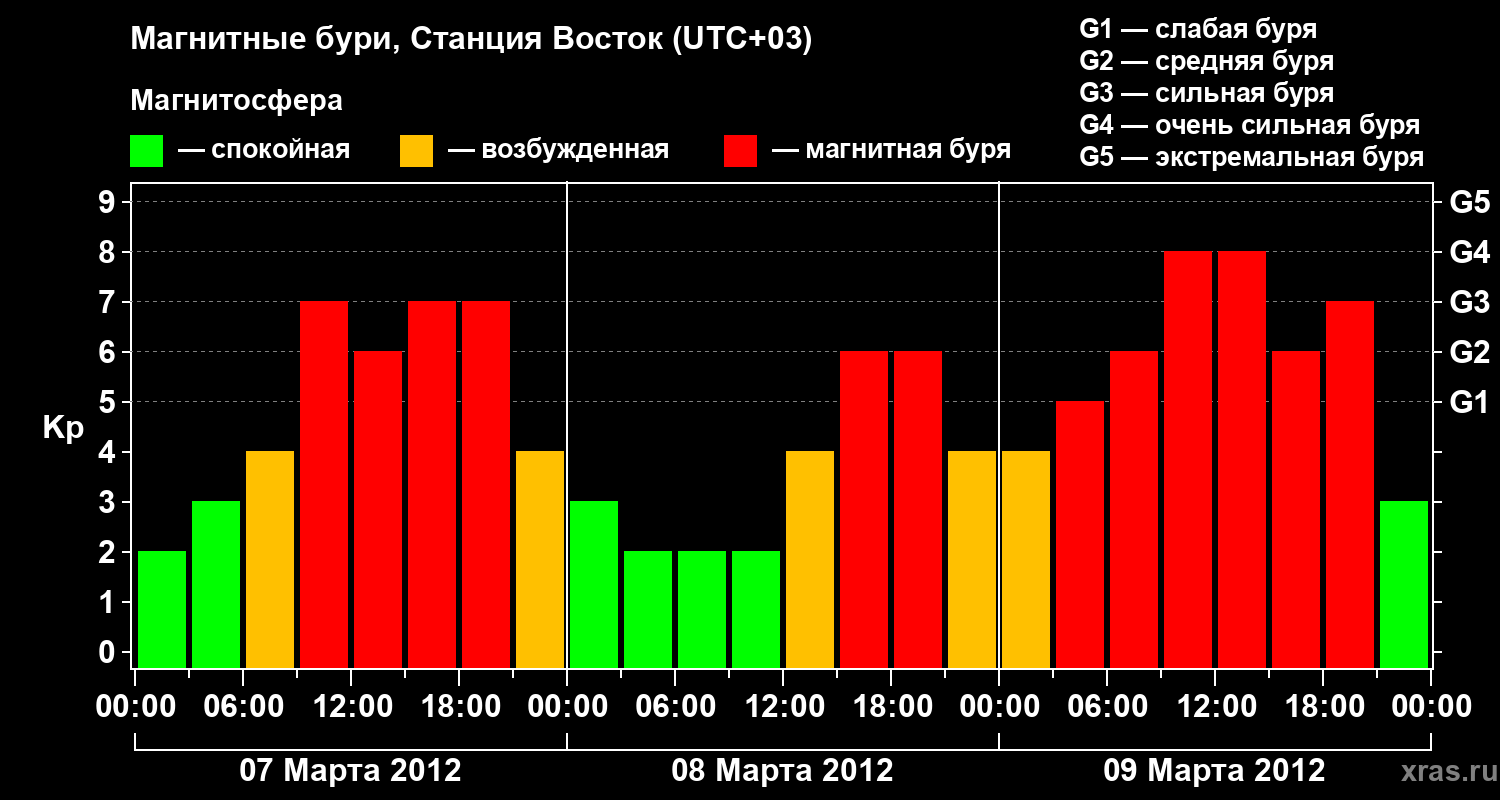 Магнитные бури локации Станция Восток — 9 марта 2012 года