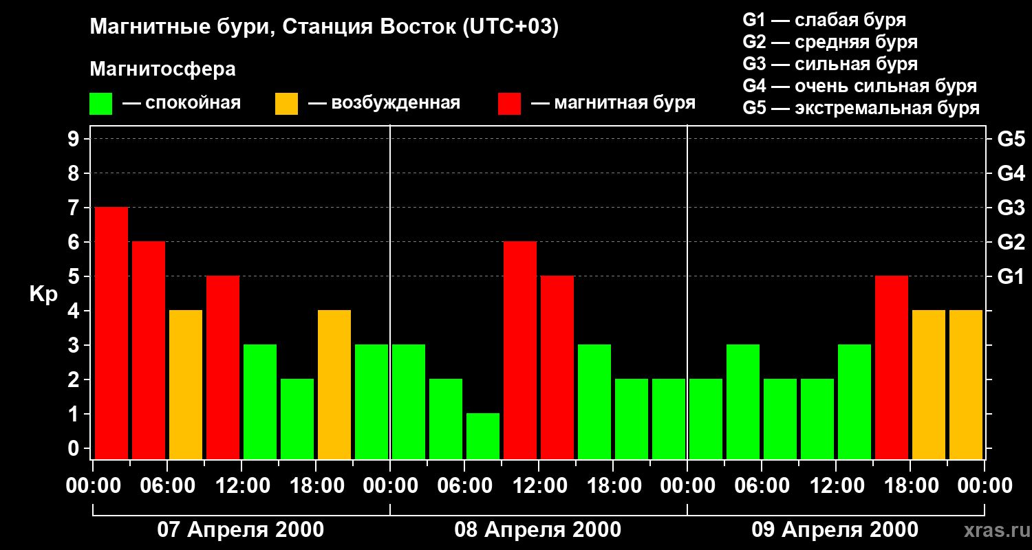 Магнитные бури локации Станция Восток — 9 апреля 2000 года