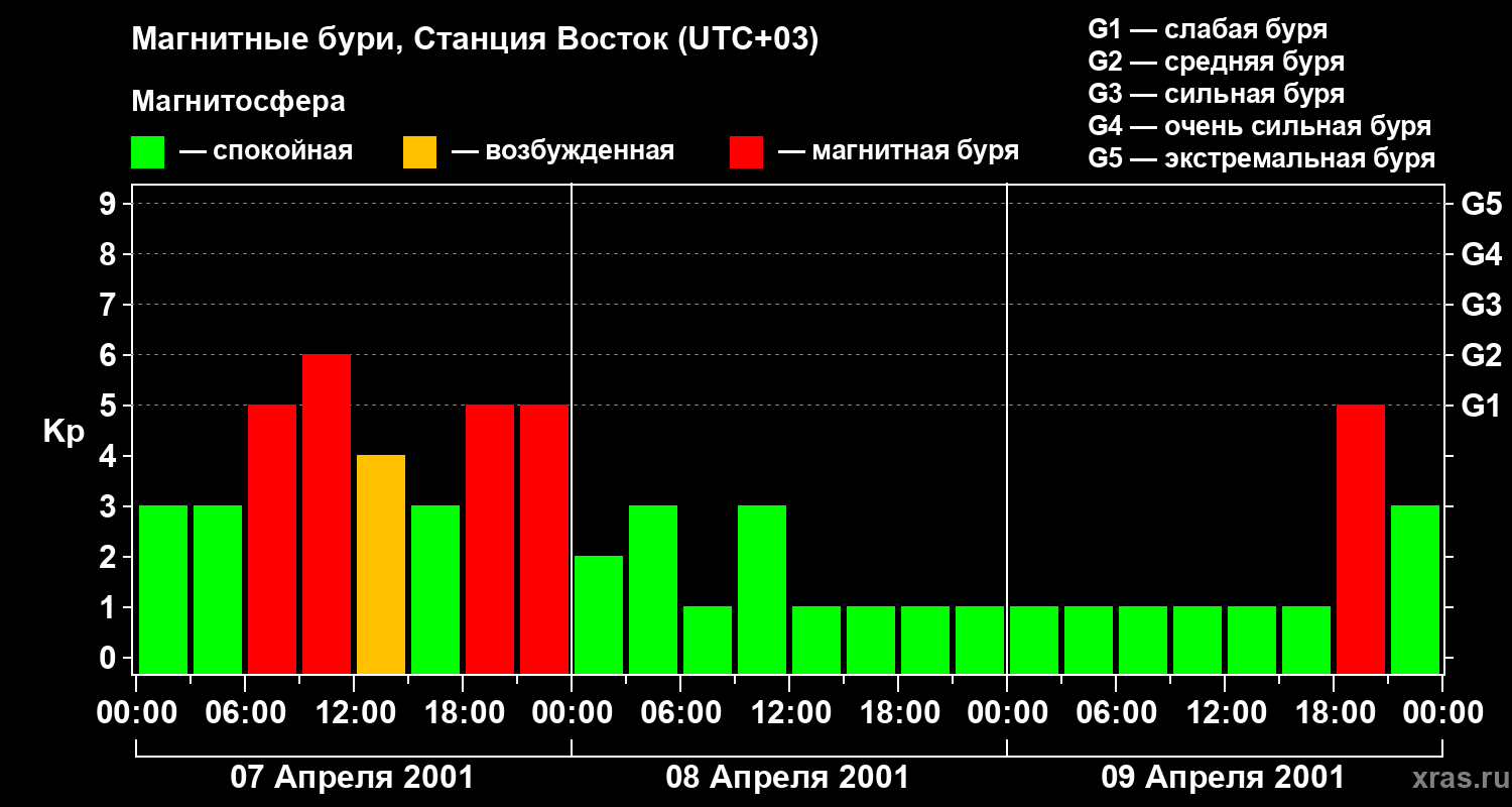 Магнитные бури локации Станция Восток — 9 апреля 2001 года