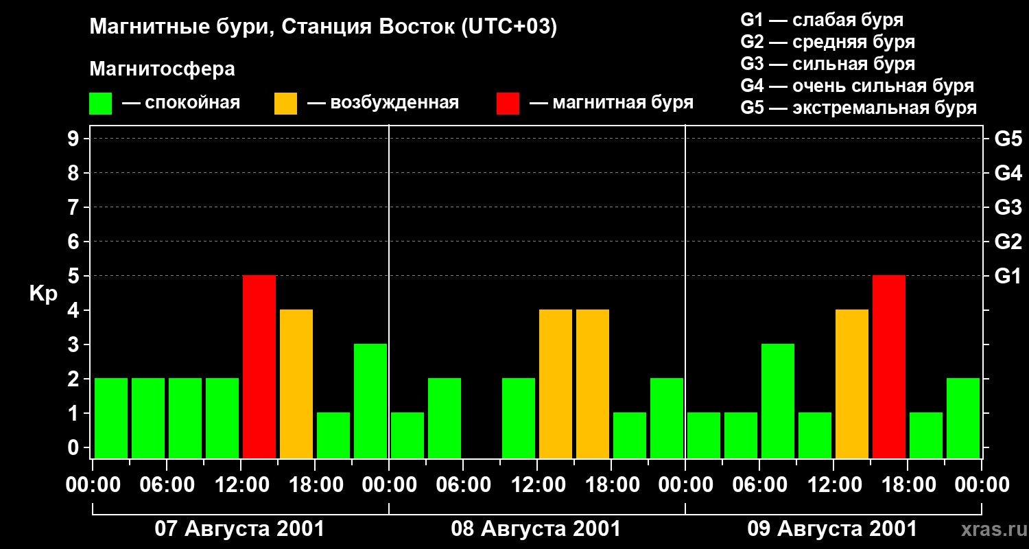 Магнитные бури локации Станция Восток — 9 августа 2001 года