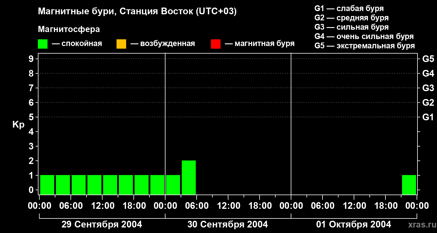 Магнитные бури локации Станция Восток — 1 октября 2004 года