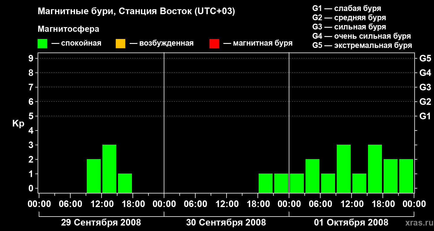 Магнитные бури локации Станция Восток — 1 октября 2008 года