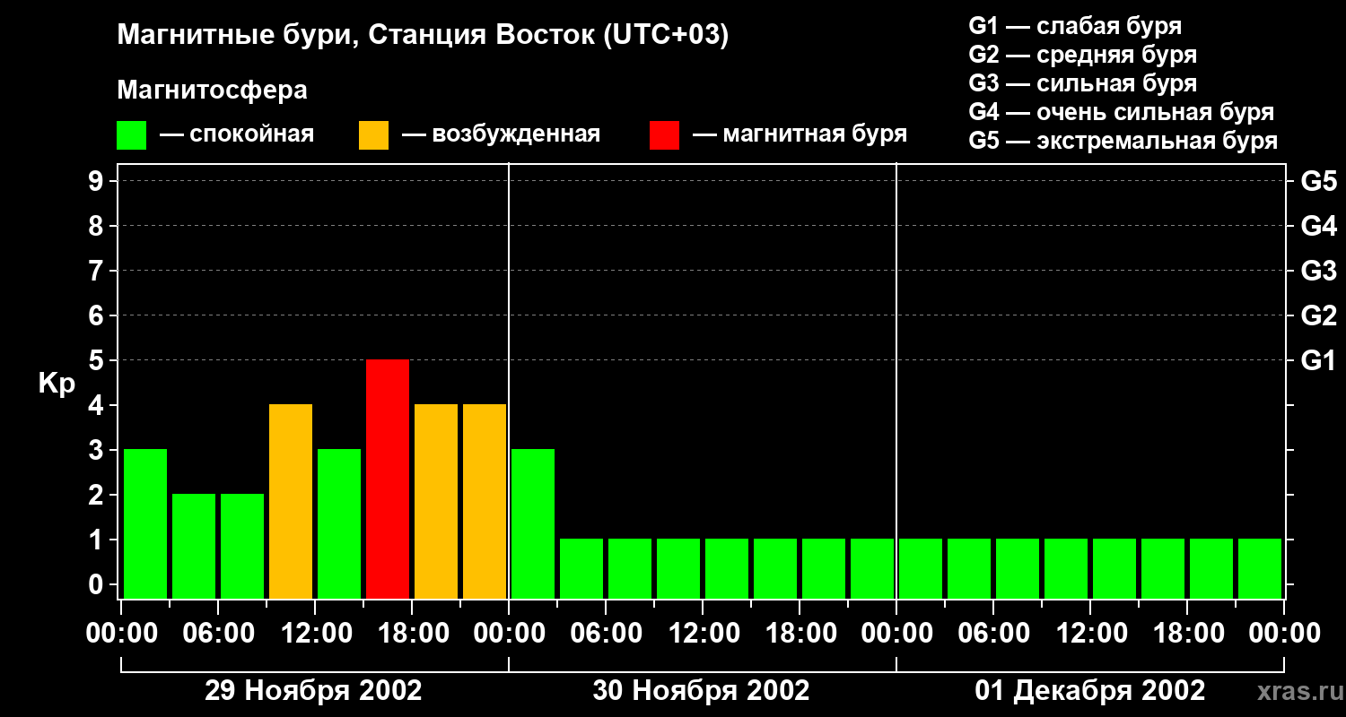 Магнитные бури локации Станция Восток 1 декабря 2002 года
