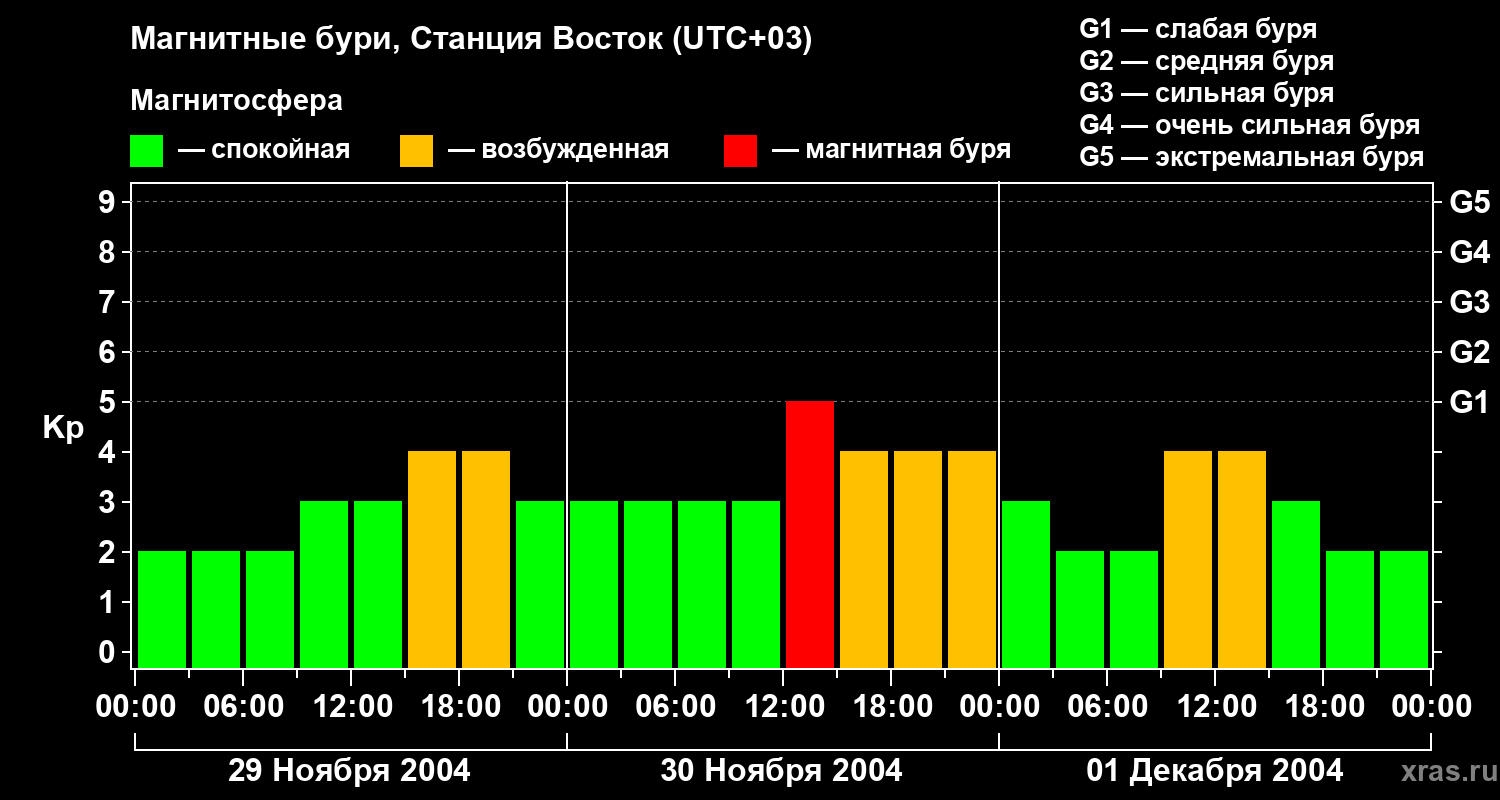 Магнитные бури локации Станция Восток — 1 декабря 2004 года