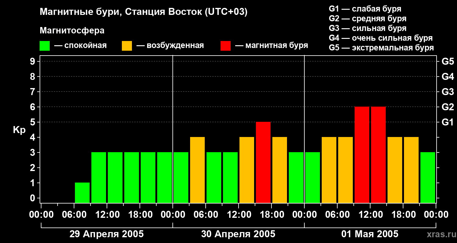 Магнитные бури локации Станция Восток — 1 мая 2005 года