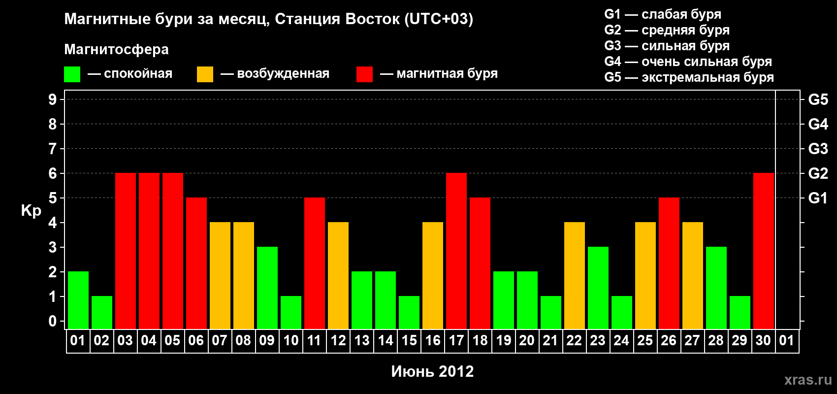 Магнитные бури локации Станция Восток — 1 июня 2012 года