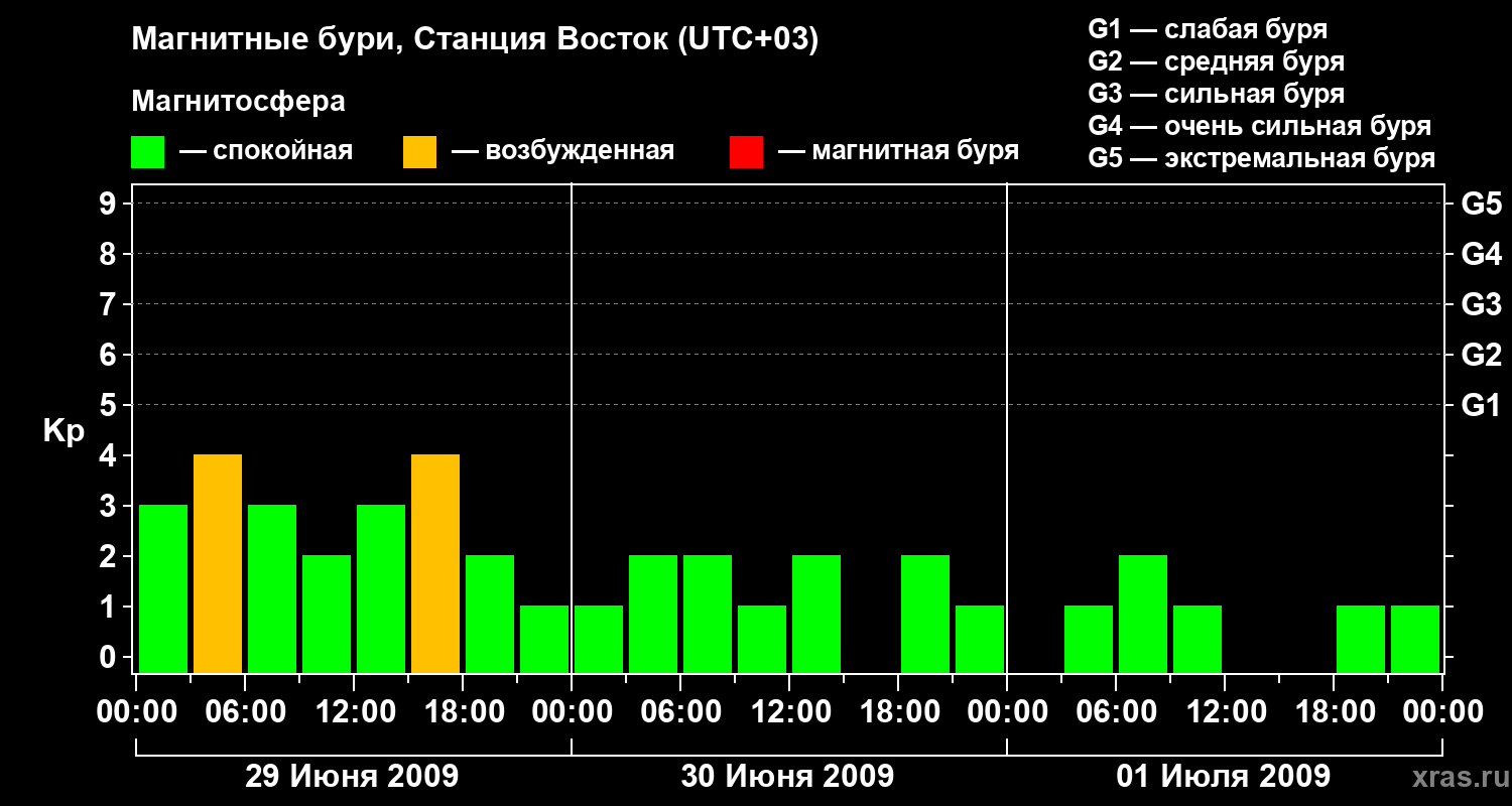 Магнитные бури локации Станция Восток — 1 июля 2009 года