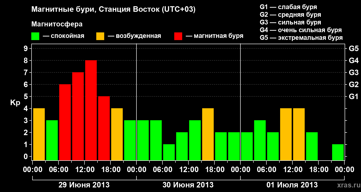 Магнитные бури локации Станция Восток — 1 июля 2013 года