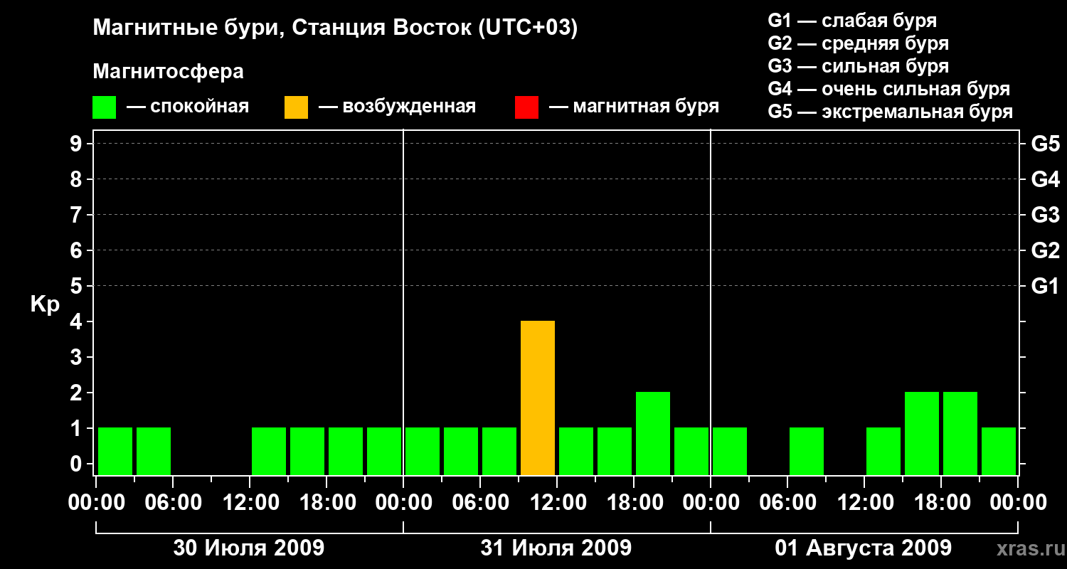 Магнитные бури локации Станция Восток — 1 августа 2009 года
