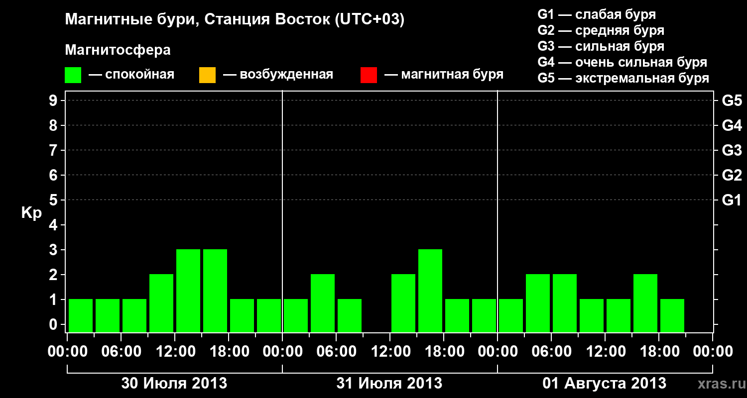 Магнитные бури локации Станция Восток — 1 августа 2013 года