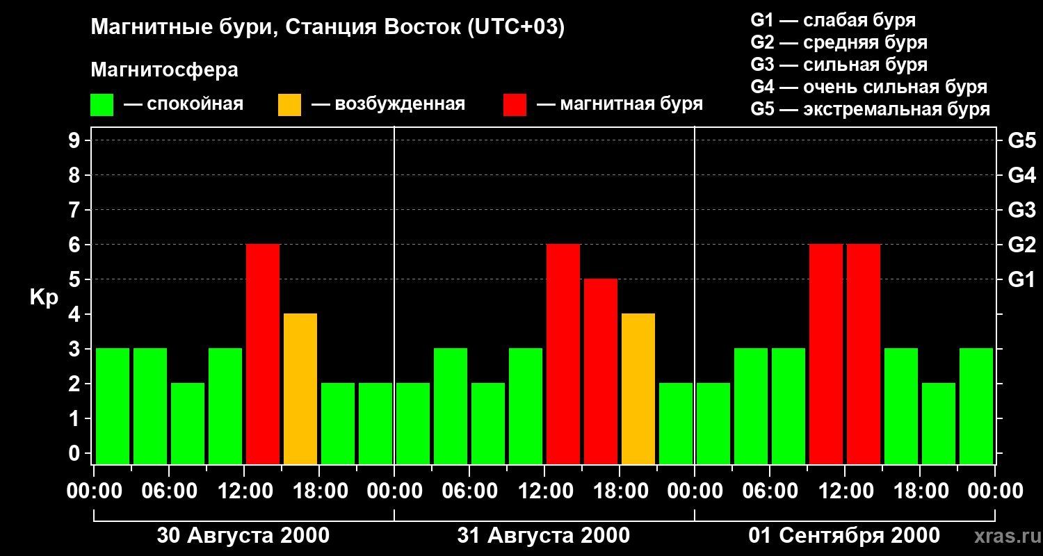 Магнитные бури локации Станция Восток — 1 сентября 2000 года