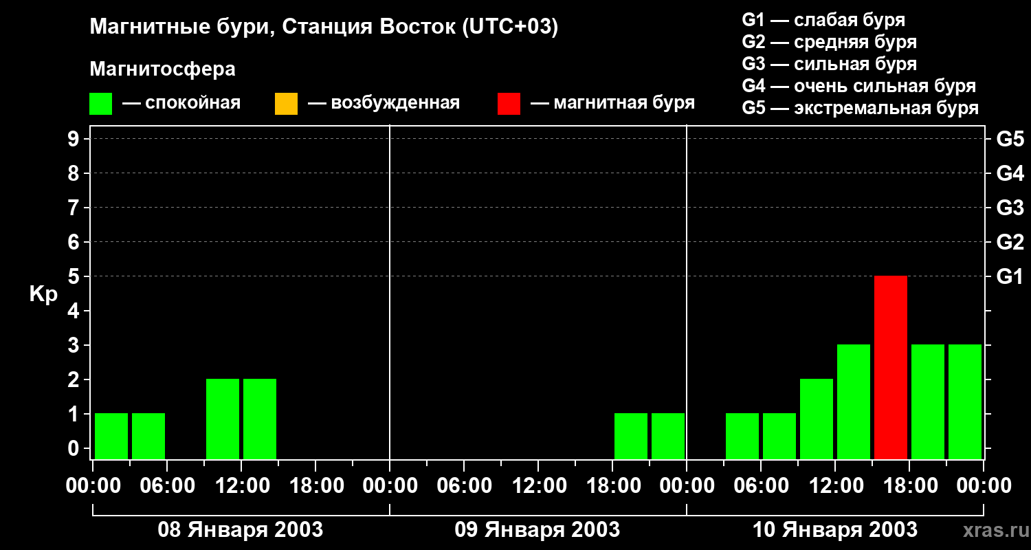 Магнитные бури локации Станция Восток — 10 января 2003 года