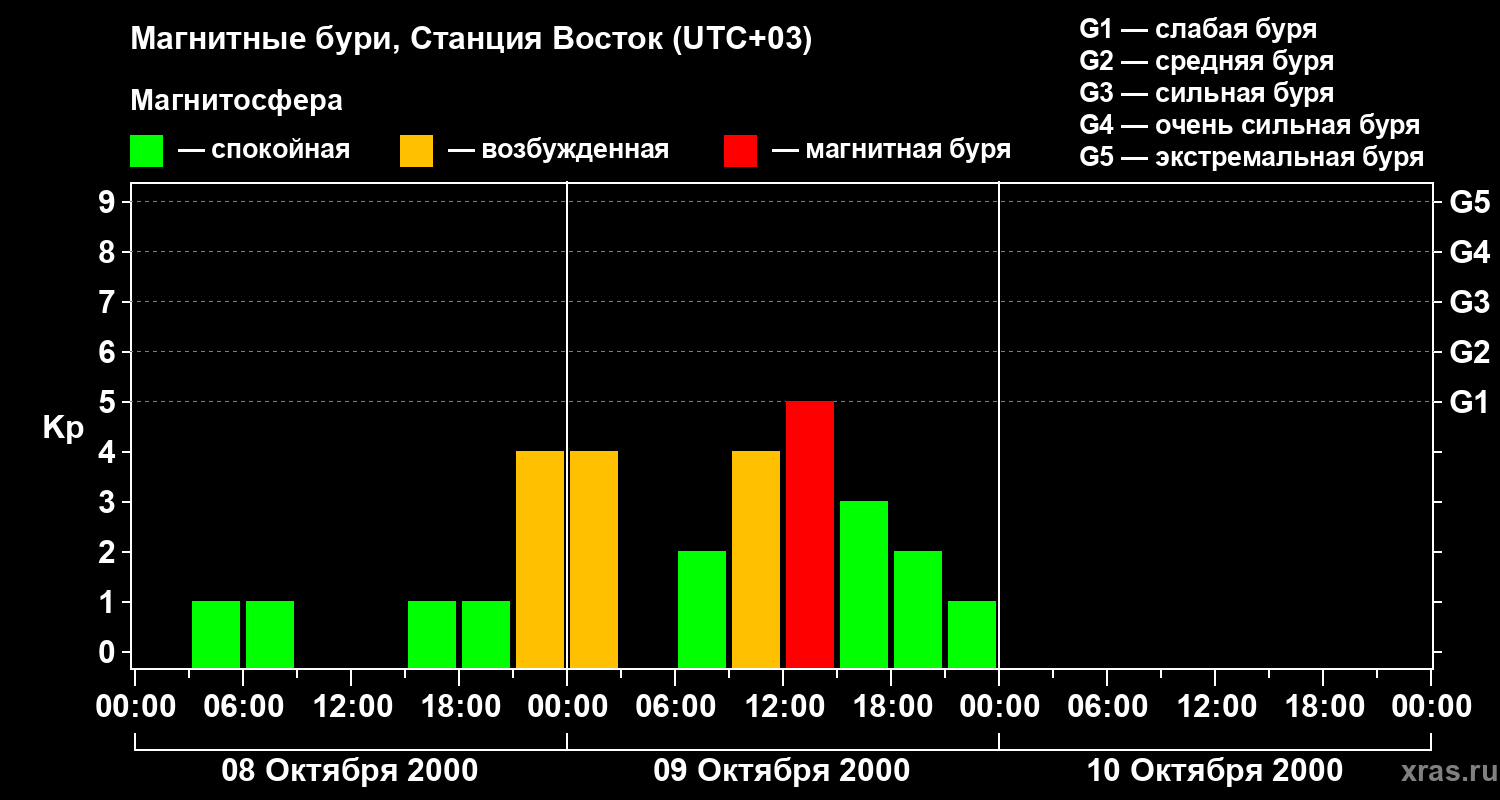 Магнитные бури локации Станция Восток — 10 октября 2000 года