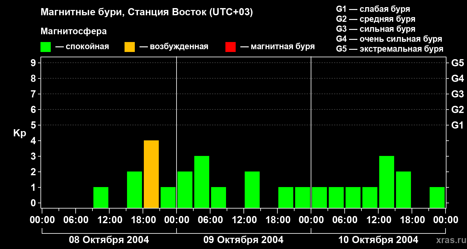 Магнитные бури локации Станция Восток — 10 октября 2004 года