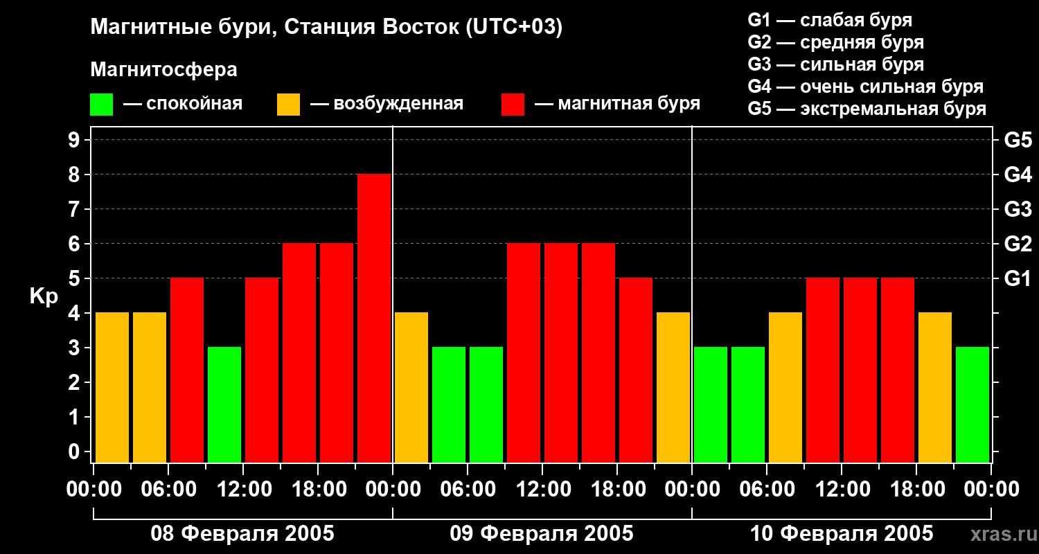 Магнитные бури локации Станция Восток — 10 февраля 2005 года