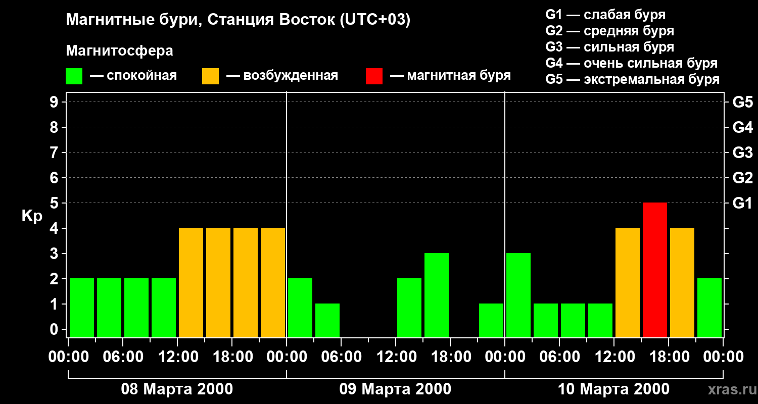 Магнитные бури локации Станция Восток — 10 марта 2000 года
