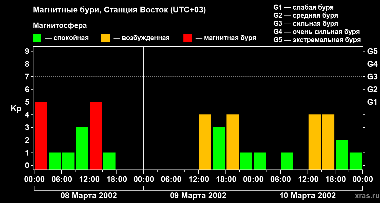 Магнитные бури локации Станция Восток — 10 марта 2002 года