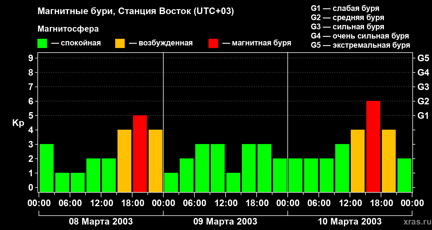 Магнитные бури локации Станция Восток — 10 марта 2003 года