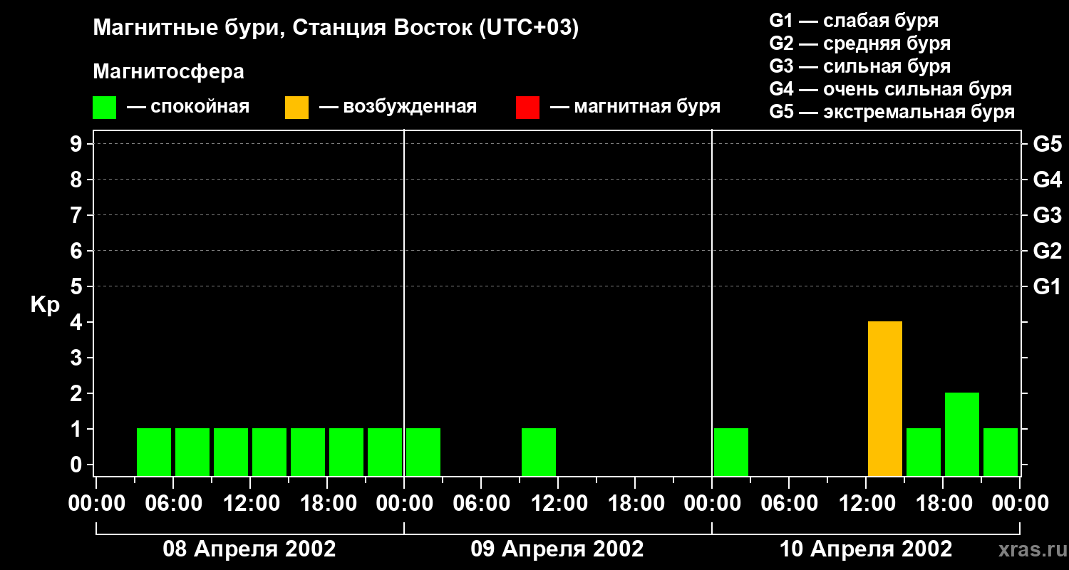 Магнитные бури локации Станция Восток — 10 апреля 2002 года