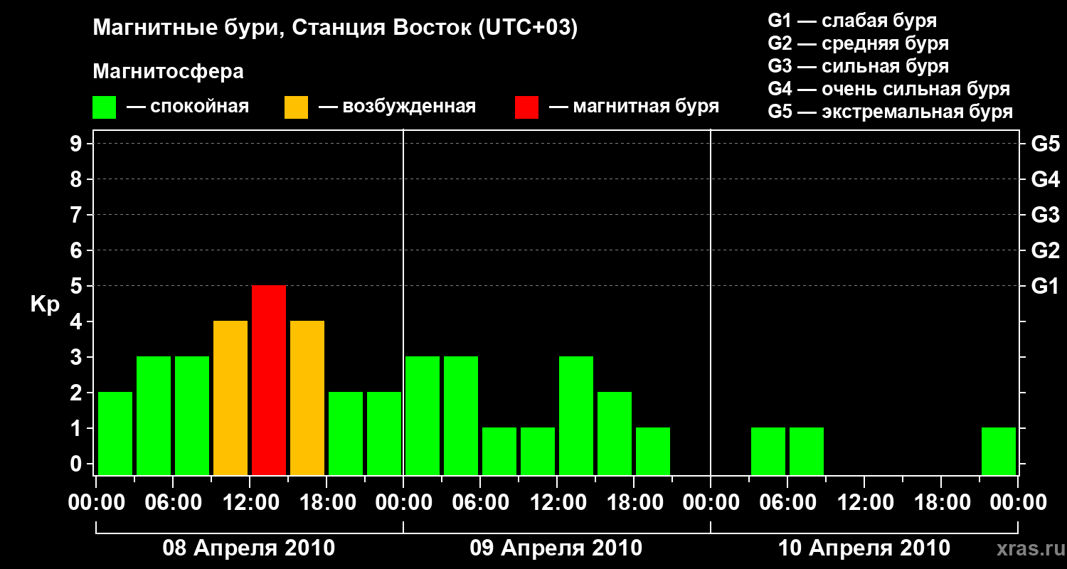 Магнитные бури локации Станция Восток — 10 апреля 2010 года