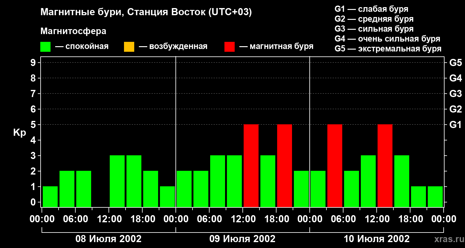 Магнитные бури локации Станция Восток — 10 июля 2002 года