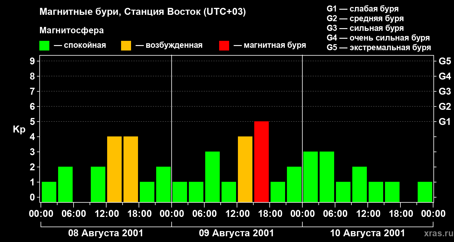 Магнитные бури локации Станция Восток — 10 августа 2001 года