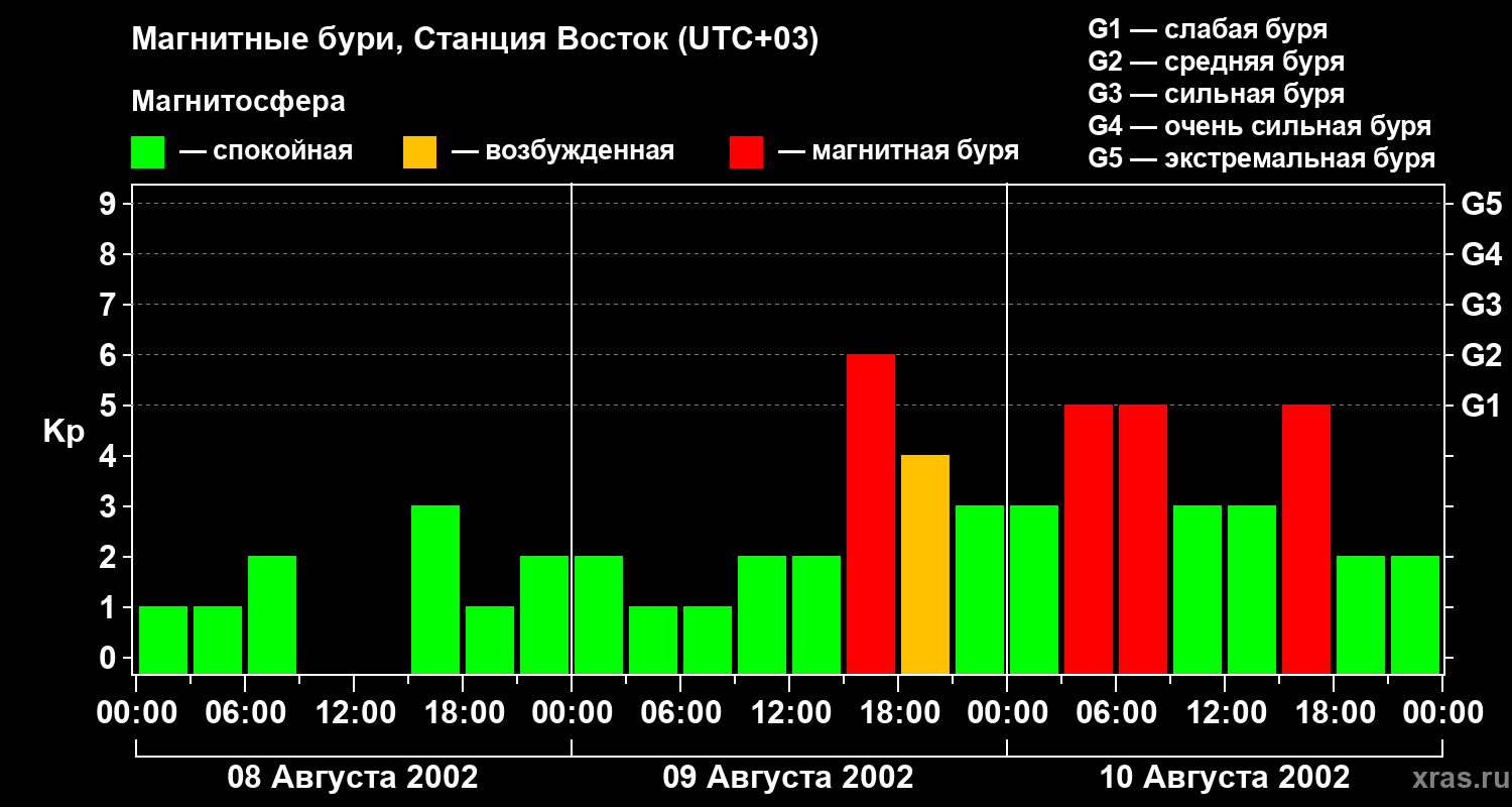 Магнитные бури локации Станция Восток — 10 августа 2002 года