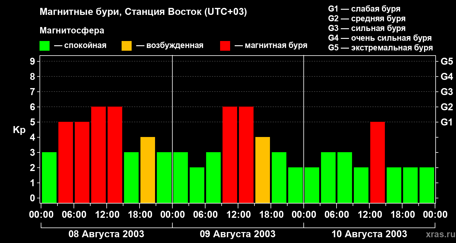 Магнитные бури локации Станция Восток — 10 августа 2003 года