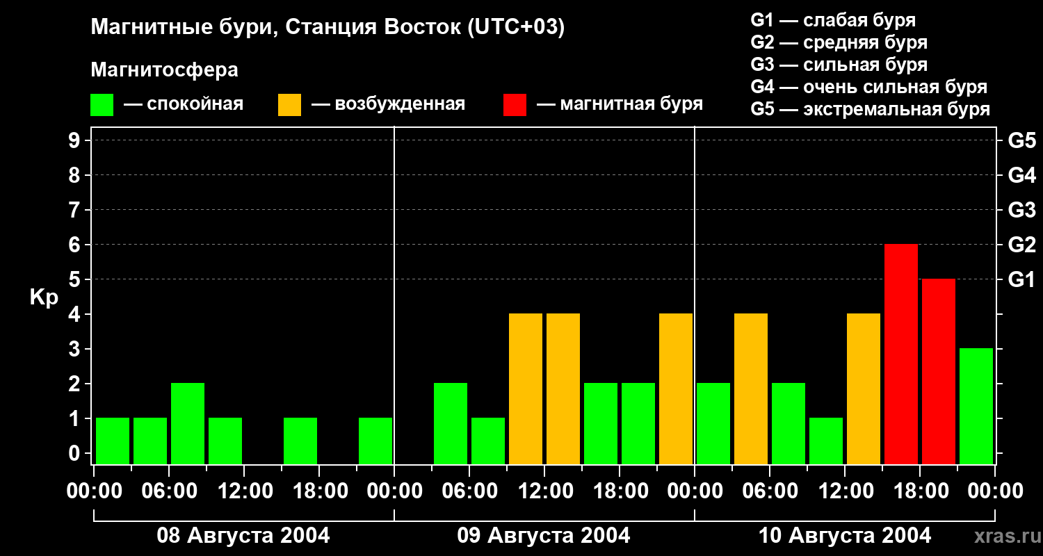 Магнитные бури локации Станция Восток — 10 августа 2004 года