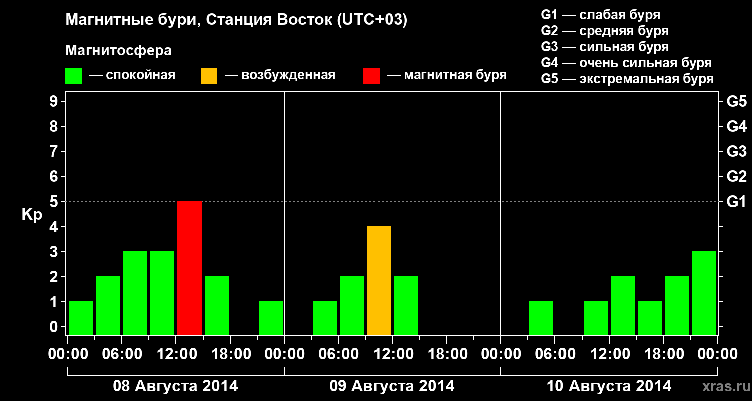 Магнитные бури локации Станция Восток — 10 августа 2014 года