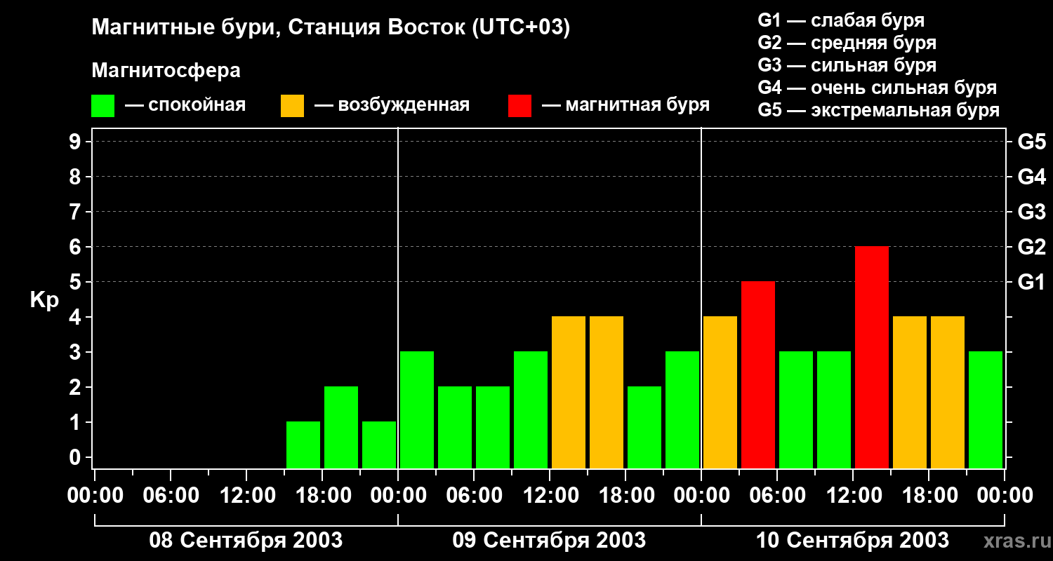 Магнитные бури локации Станция Восток в сентябре 2003 года