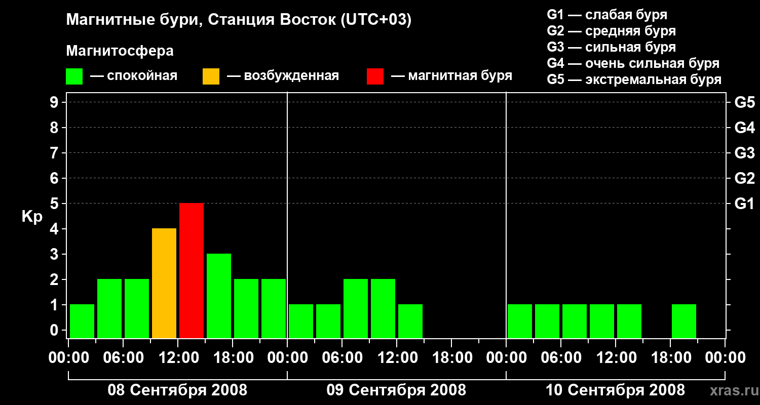 Магнитные бури локации Станция Восток в сентябре 2008 года