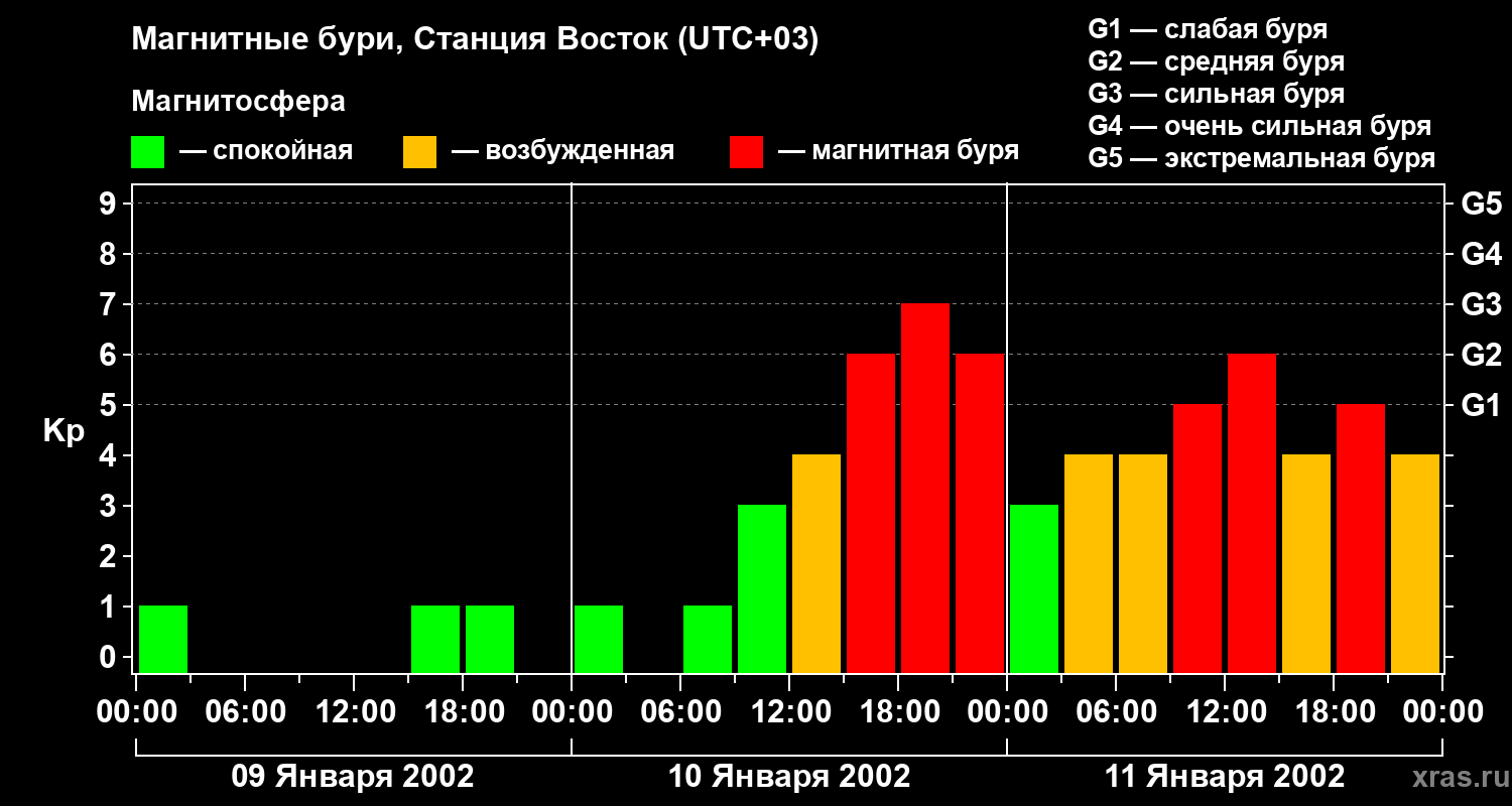 Магнитные бури локации Станция Восток — 11 января 2002 года