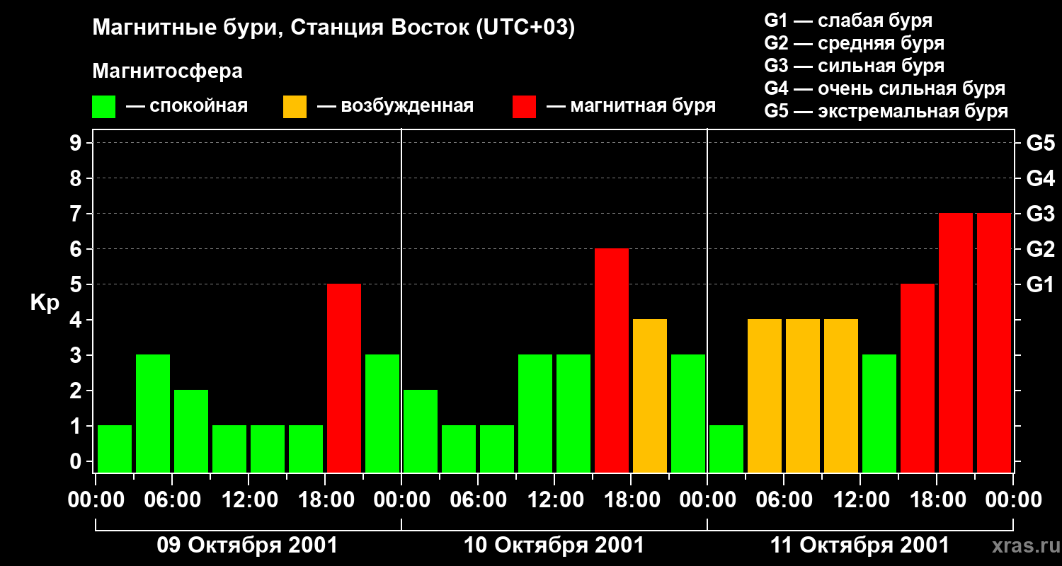 Магнитные бури локации Станция Восток — 11 октября 2001 года