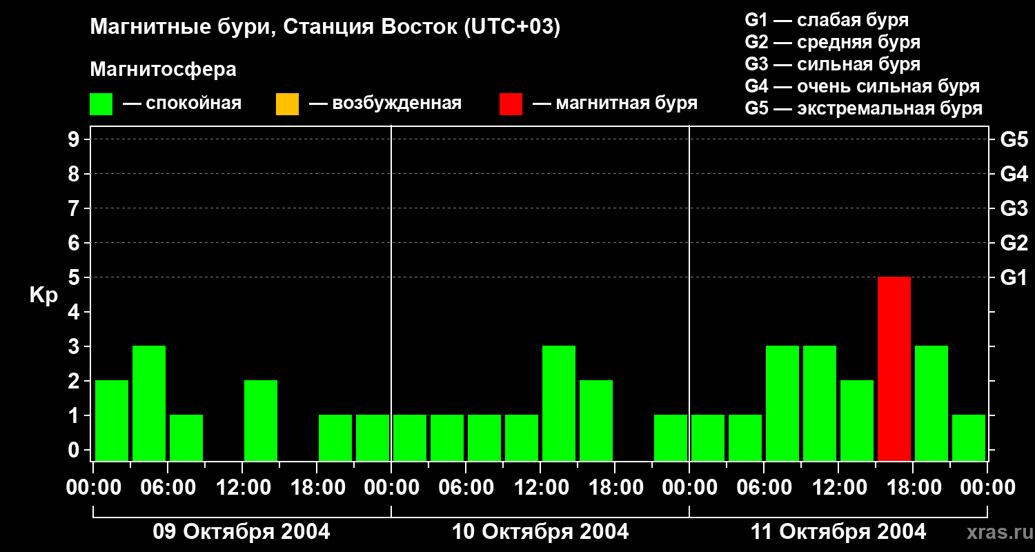 Магнитные бури локации Станция Восток — 11 октября 2004 года