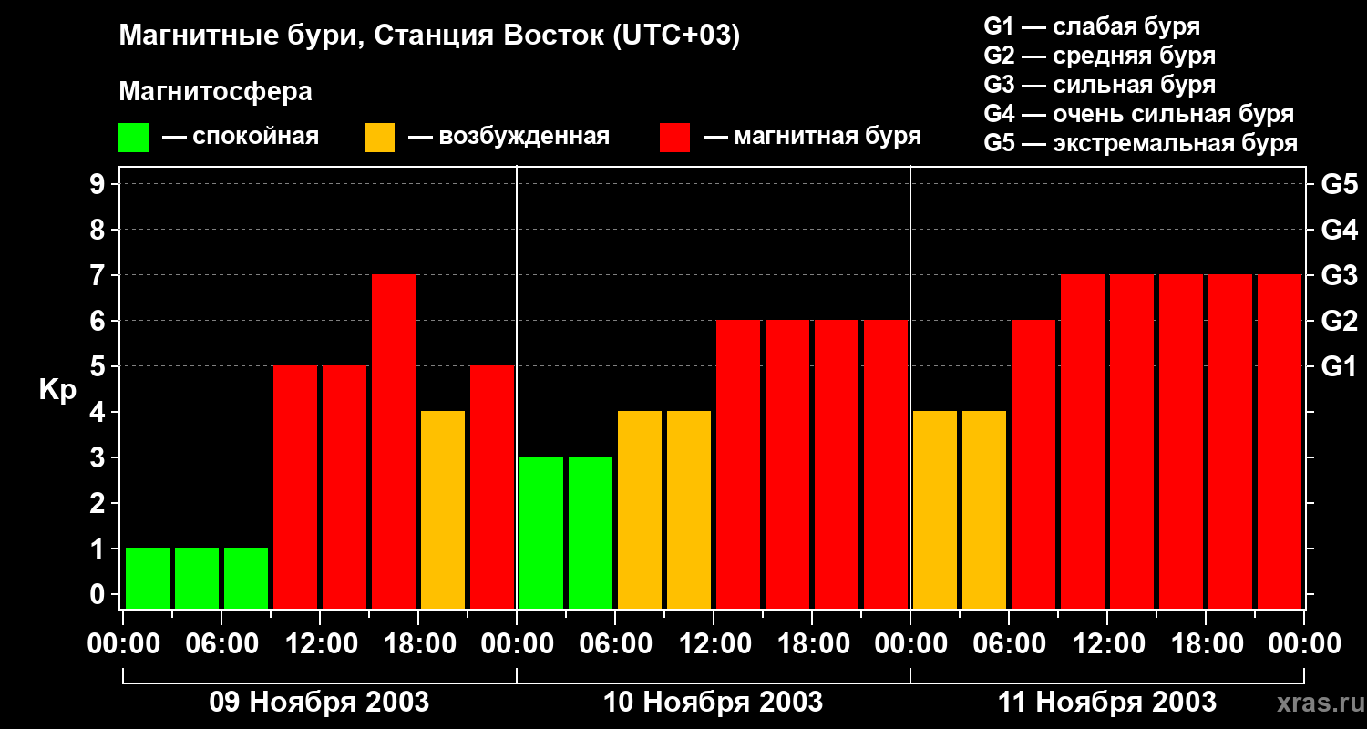 Магнитные бури локации Станция Восток — 11 ноября 2003 года