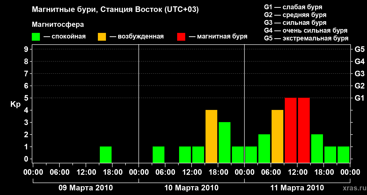 Магнитные бури локации Станция Восток — 11 марта 2010 года