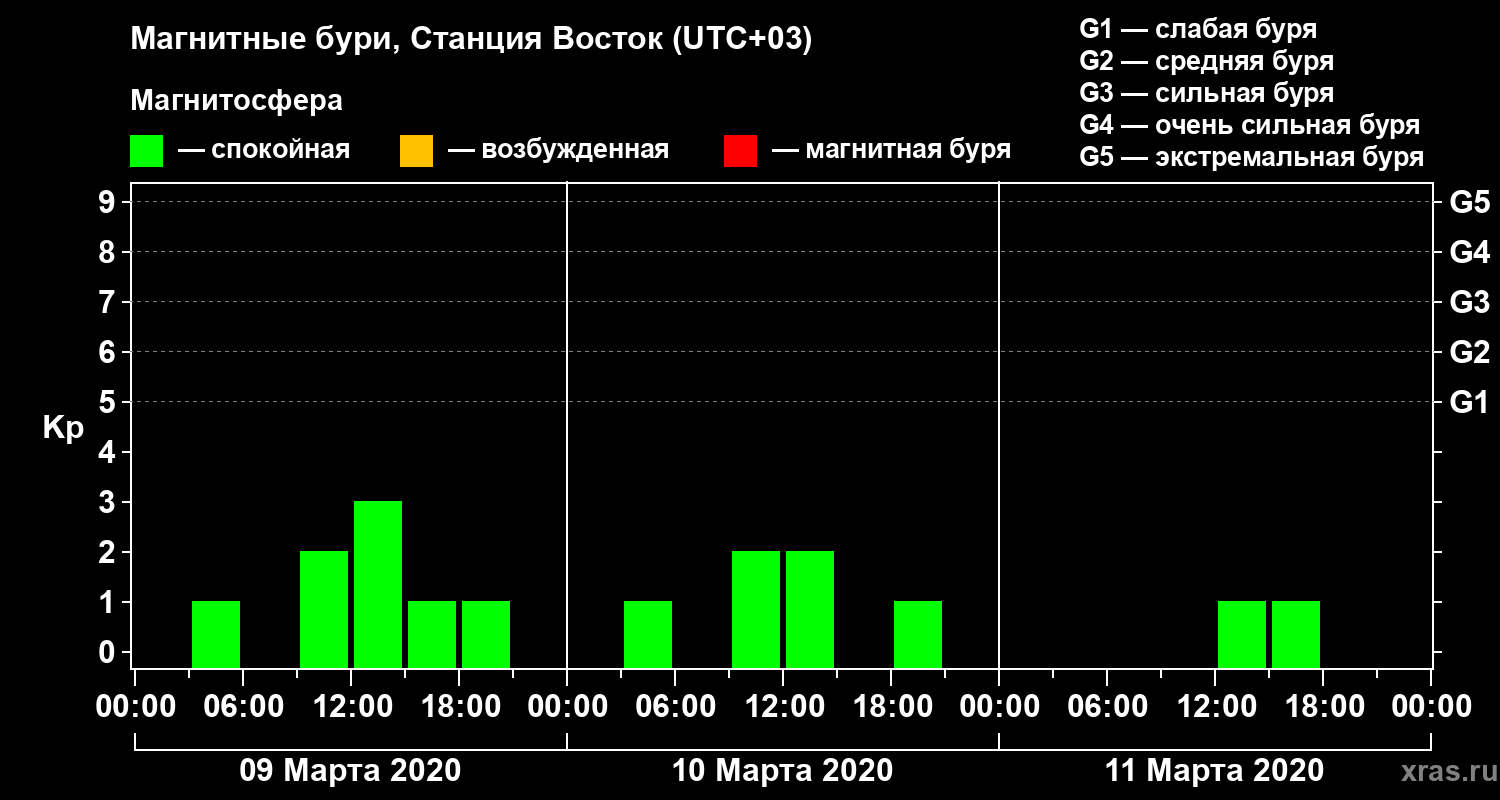 Магнитные бури локации Станция Восток — 11 марта 2020 года