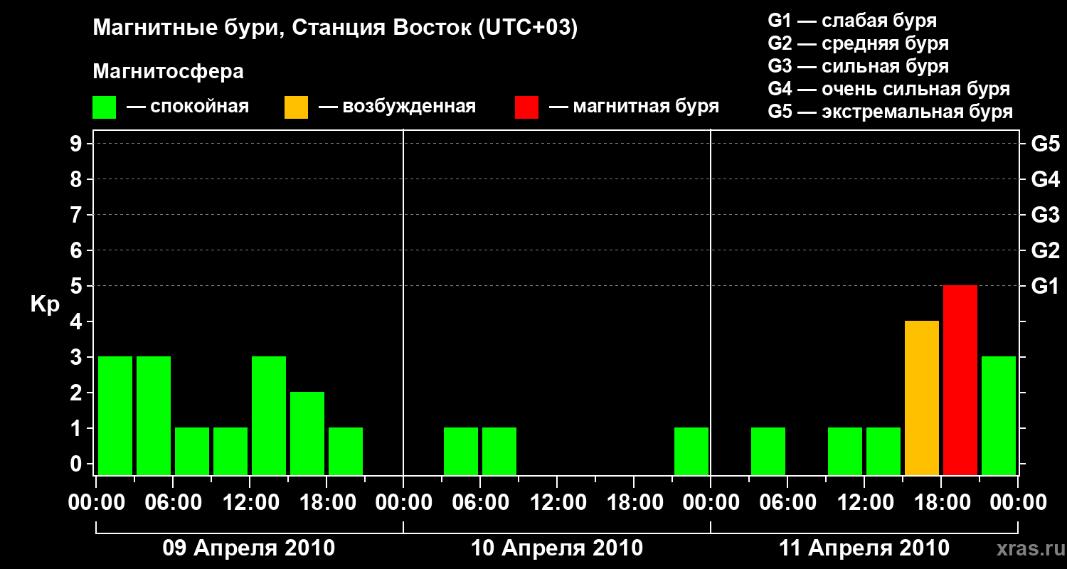 Магнитные бури локации Станция Восток — 11 апреля 2010 года