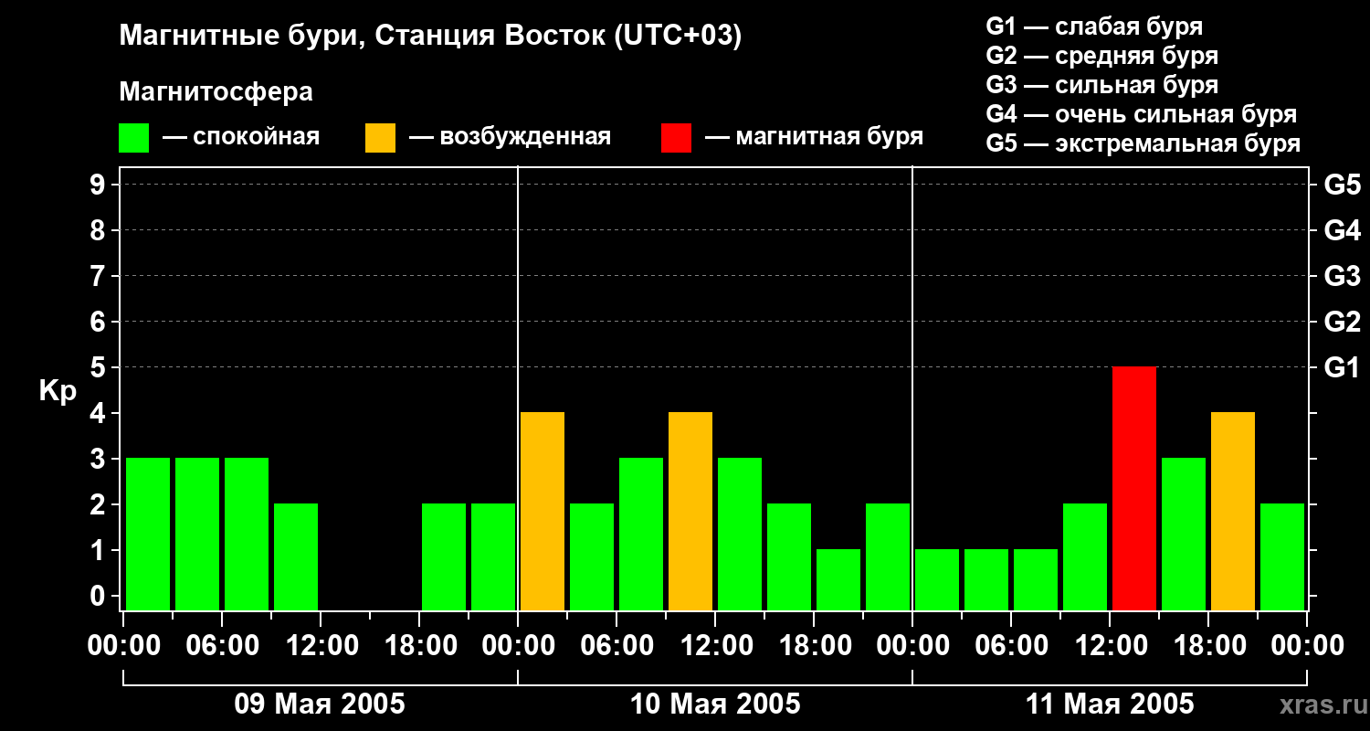Магнитные бури локации Станция Восток — 11 мая 2005 года