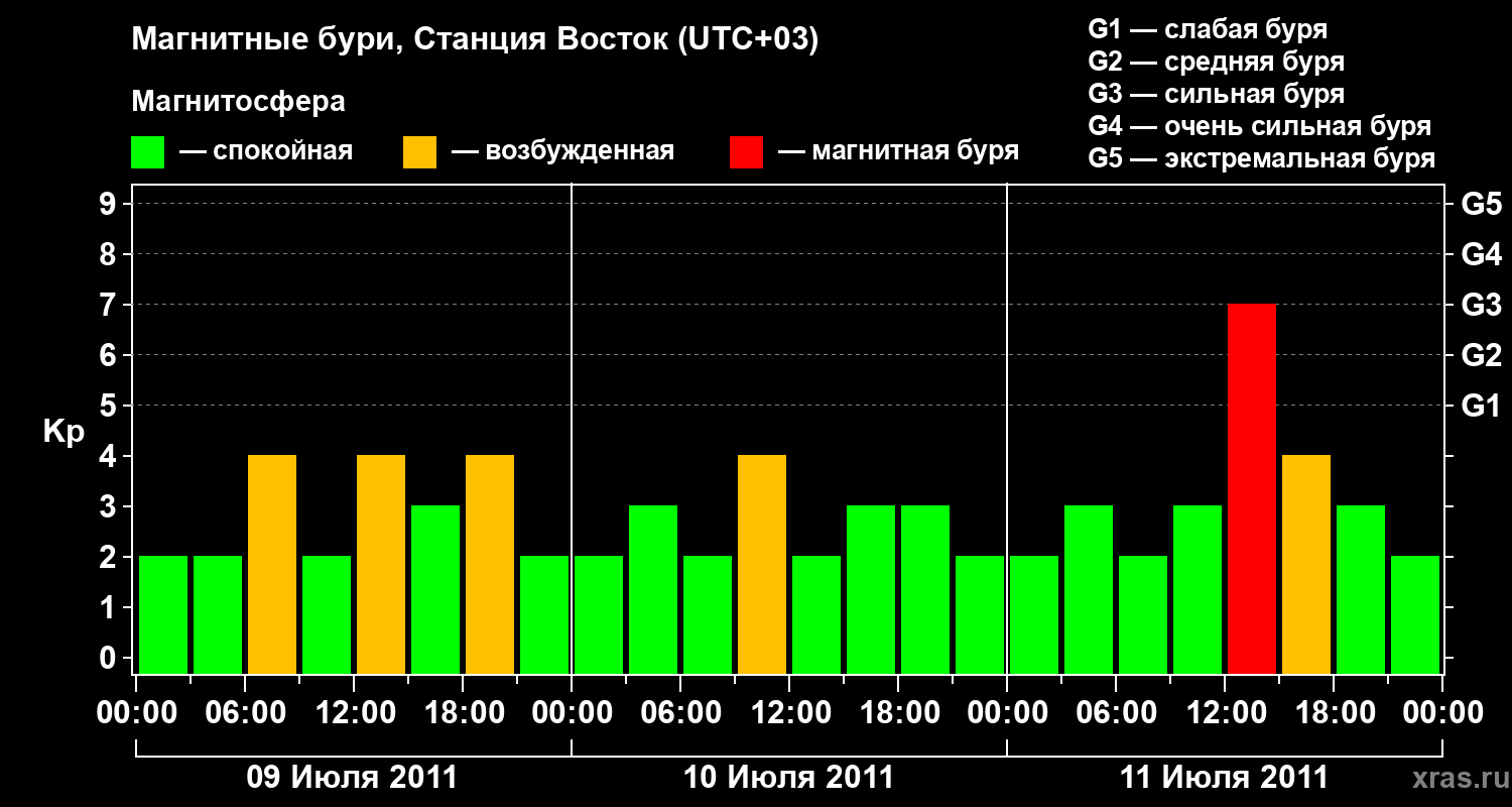 Магнитные бури локации Станция Восток — 11 июля 2011 года