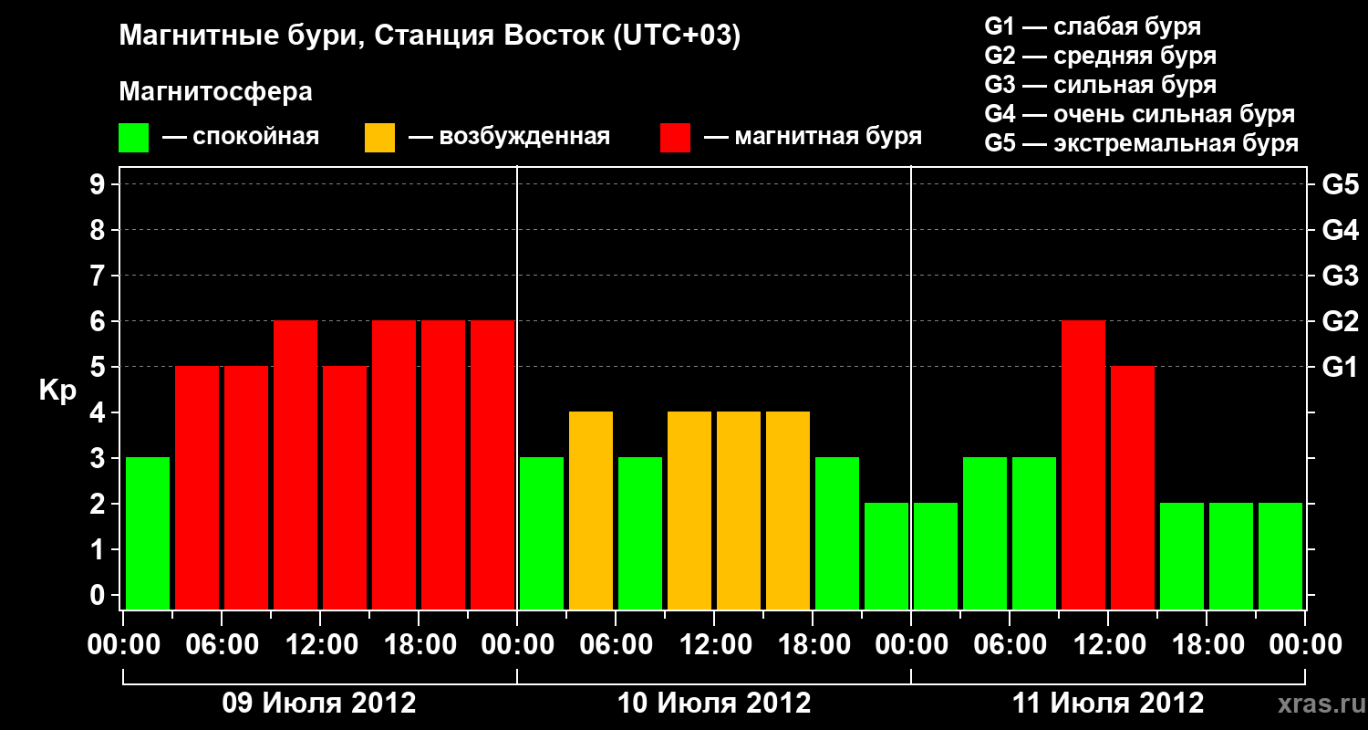 Магнитные бури локации Станция Восток — 11 июля 2012 года