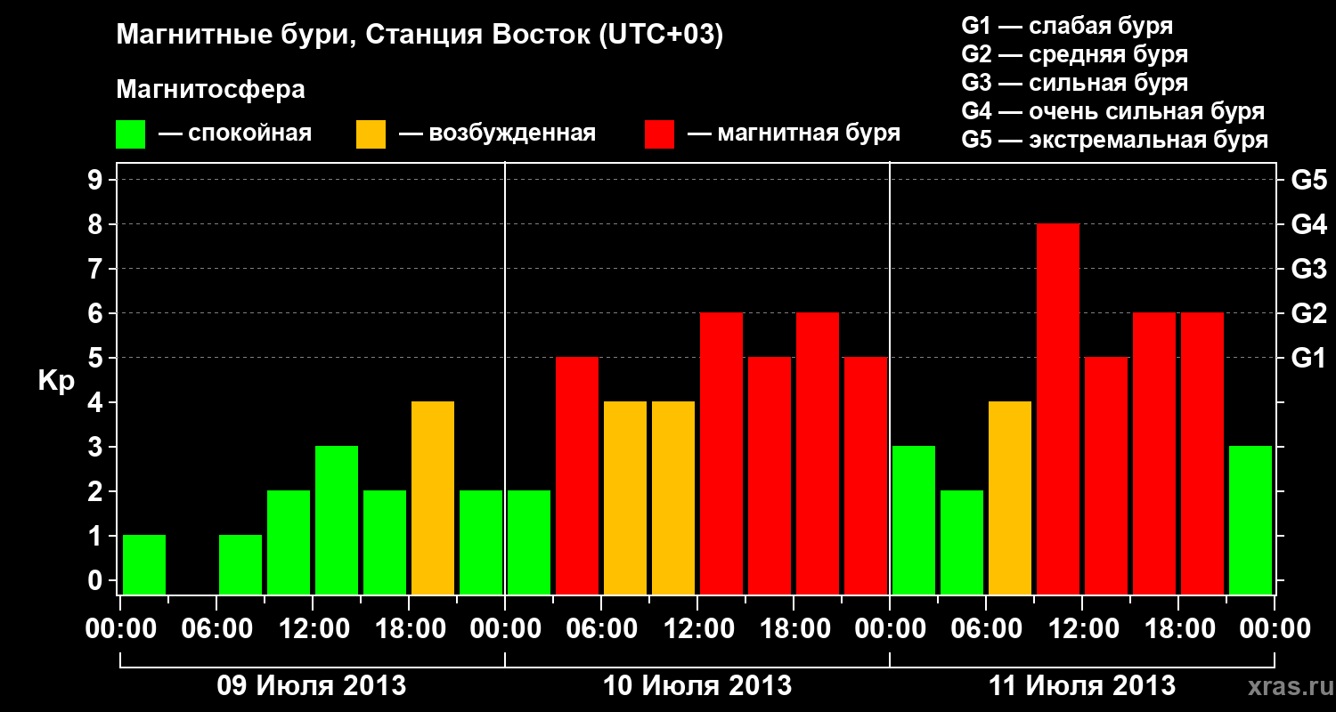 Магнитные бури локации Станция Восток — 11 июля 2013 года