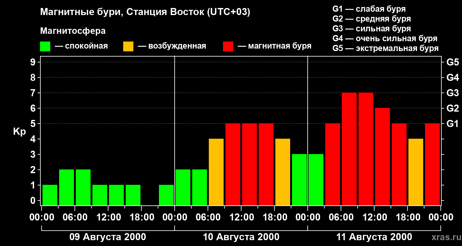 Магнитные бури локации Станция Восток — 11 августа 2000 года