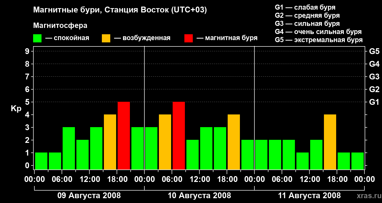 Магнитные бури локации Станция Восток — 11 августа 2008 года