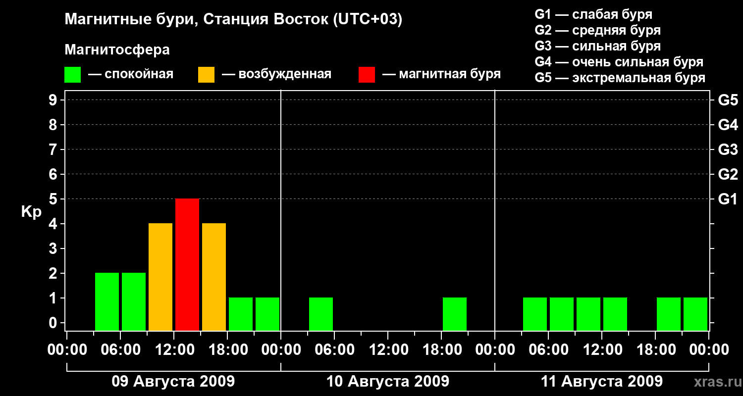 Магнитные бури локации Станция Восток — 11 августа 2009 года