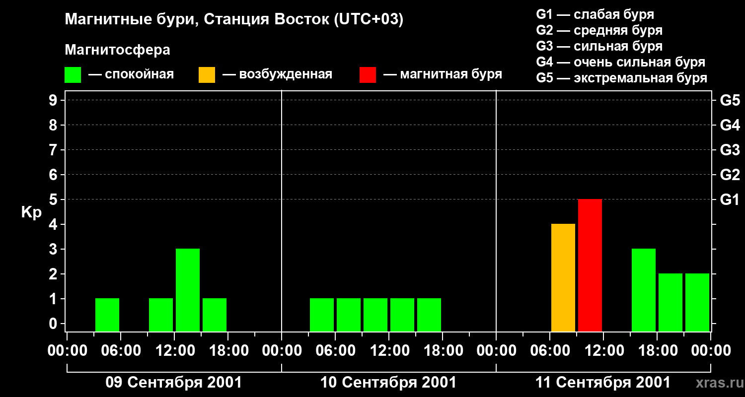 Магнитные бури локации Станция Восток 11 сентября 2001 года