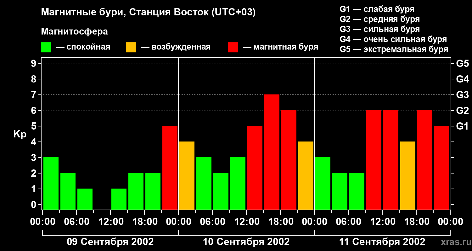 Магнитные бури локации Станция Восток в сентябре 2002 года
