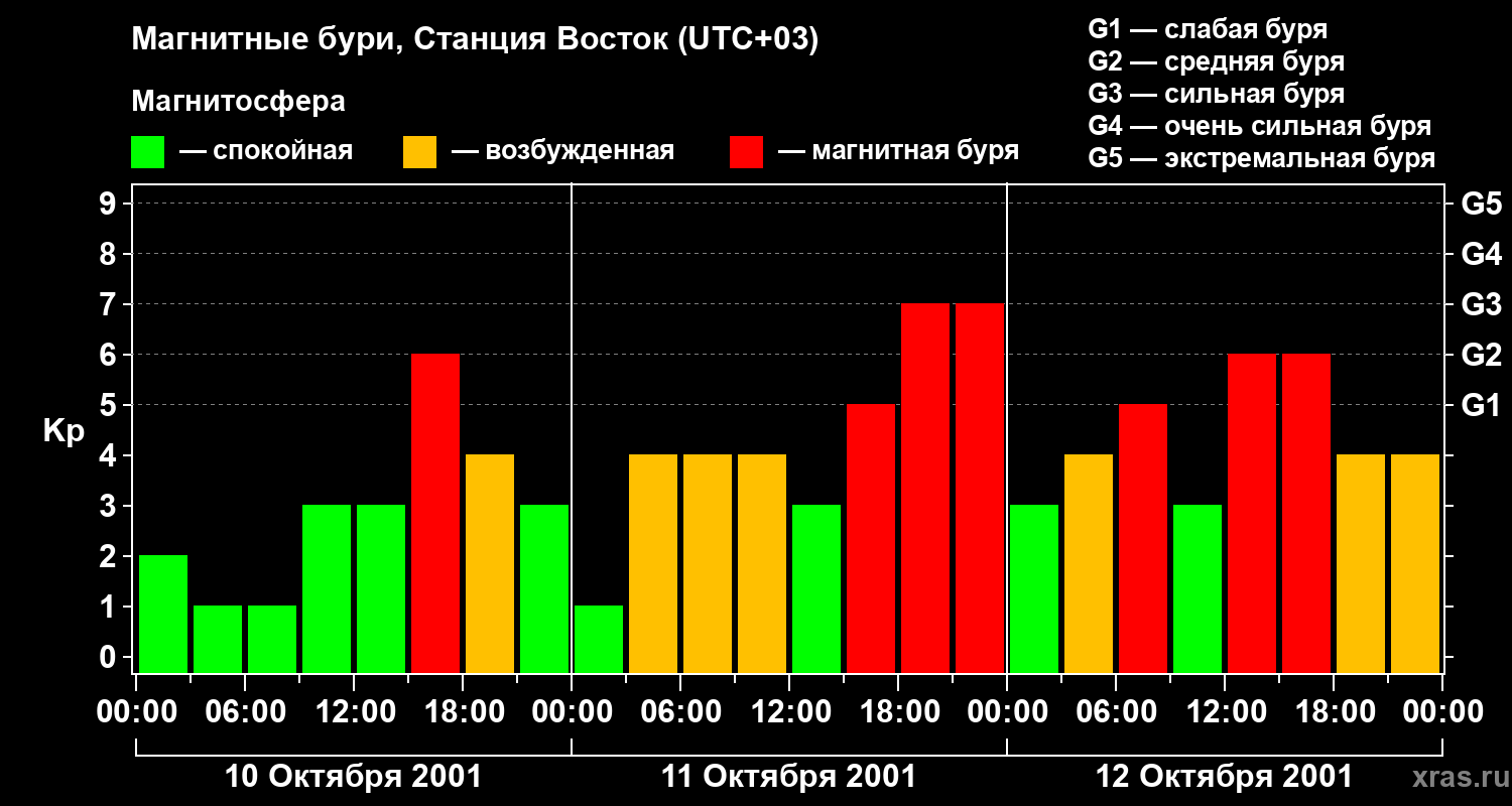 Магнитные бури локации Станция Восток — 12 октября 2001 года