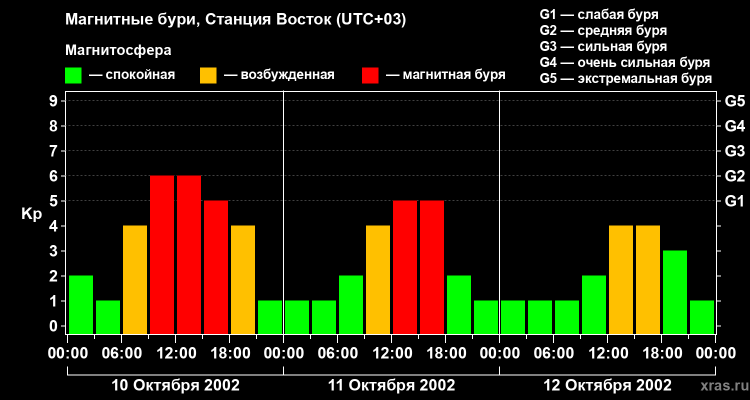 Магнитные бури локации Станция Восток 12 октября 2002 года